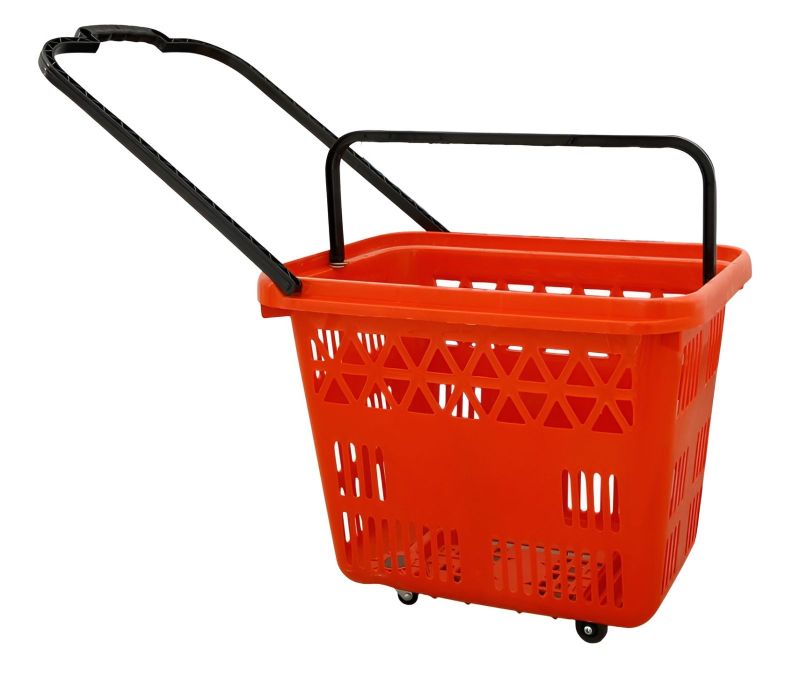 Изработена от здрав и устойчив на износване пластмасов материал, кошницата е проектирана за продължителна употреба в натоварена търговска среда. Снабдена е с колелца и телескопична дръжка, което позволява лесно придвижване, дори когато е пълна с по-тежки продукти. Това прави преживяването на клиентите по-комфортно и ги насърчава към по-голям обем на пазаруване.