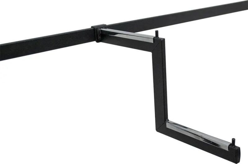 Бастун-стълба, предназначен за монтаж върху предна тръба. Конструкцията позволява подреждане на няколко нива за окачване, като предоставя повече пространство и видимост за представяне на продукти. Повърхността в черен мат създава естетичен и модерен акцент, подходящ за магазини и шоуруми. Изработката осигурява здравина и стабилност при ежедневно използване. Идеално решение за оптимално организиране и визуално подчертаване на стоките.