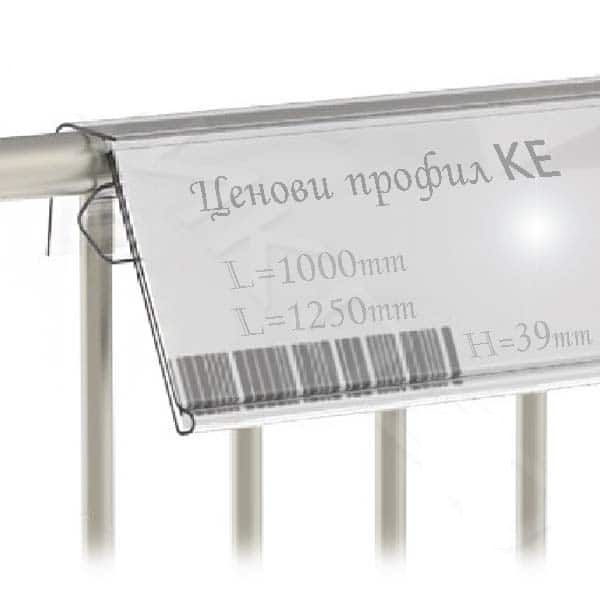 Профил с размери 39 мм ширина и 1250 мм дължина, предназначен за закрепване върху телени кошове. Позволява сигурно и удобно поставяне на ценови етикети, което улеснява актуализацията и поддържането на информацията за продуктите. Изработен от здрав материал, този профил е издръжлив и подходящ за интензивна употреба в търговски обекти и складови помещения. Осигурява професионален и подреден външен вид на търговската площ.