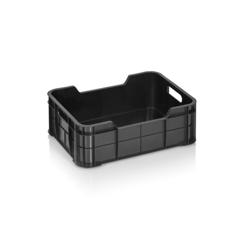 Пластмасова каса с капацитет 11 литра, предназначена за транспортиране и съхранение на плодове, зеленчуци, месо, както и за нуждите на различни индустриални сектори.