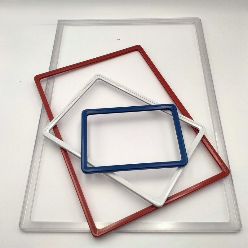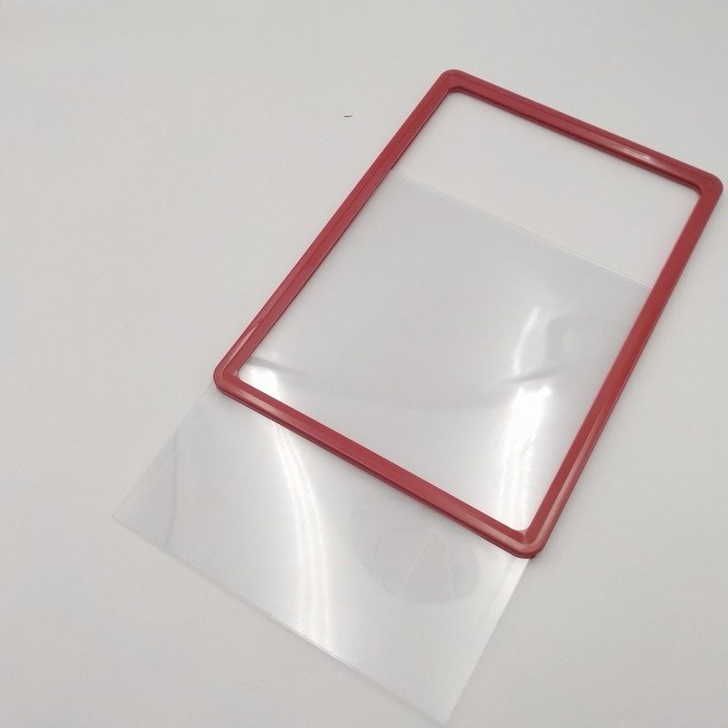Рамка А6 в червен цвят с прозрачен джоб за бърза и лесна смяна на документи.