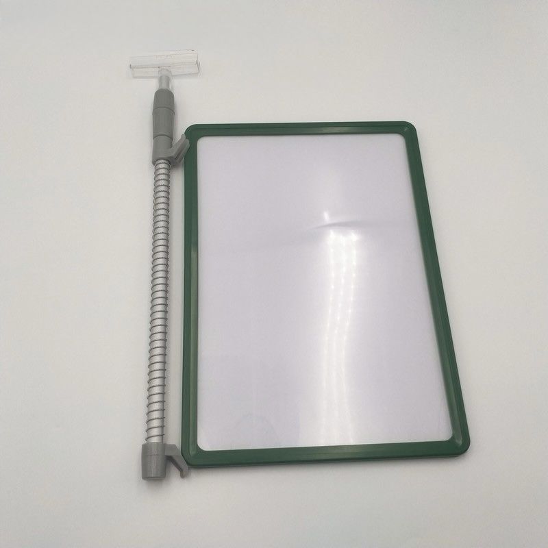 Комплектът включва стойка с пружина, предназначена за закрепване към промоционални кошове, както и рамка в червен цвят с прозрачен джоб. Пружинният механизъм позволява лесно позициониране и стабилно захващане, а рамката предпазва документите от прах и замърсявания, като същевременно осигурява отлична видимост на информацията. Подходящо решение за магазини, търговски обекти и складове за показване на цени, промоции или инструкции. Изработено от здрави и устойчиви материали, гарантиращи дълготрайна употреба.