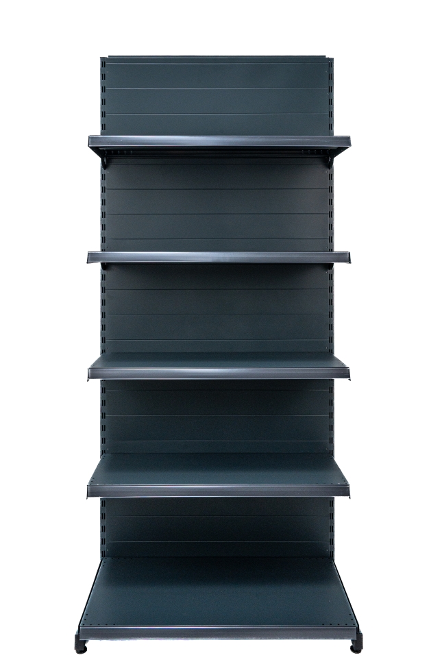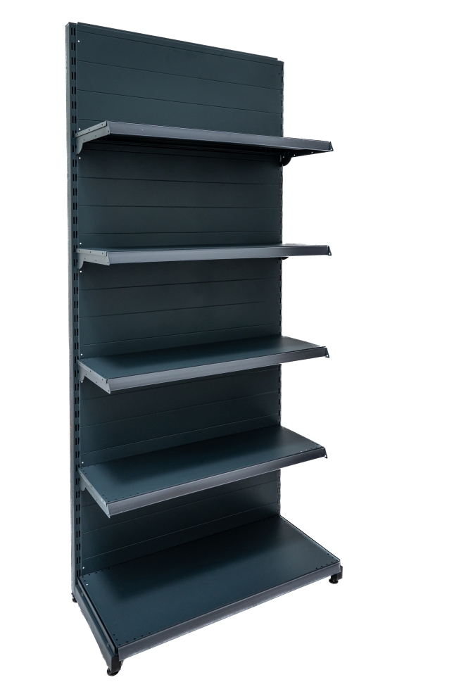 Крайстенен стелаж с плътен гръб от серията ECO LINE е надеждно и стилно решение за оборудване на вашия магазин.