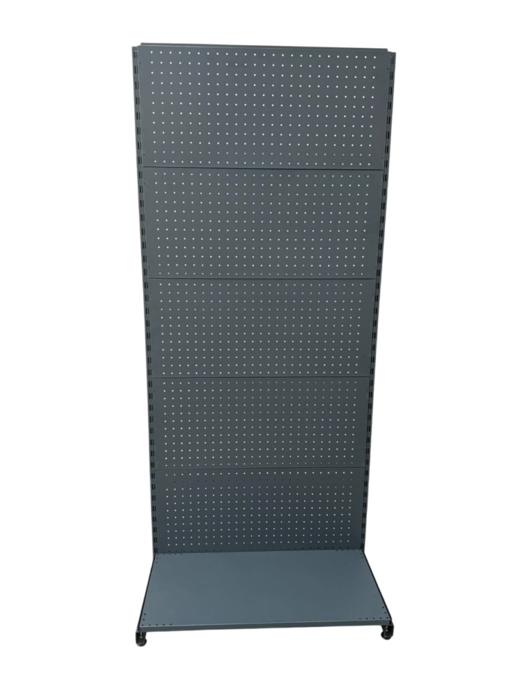 Ключовото предимство на перфорирания гръб е неговата изключителна гъвкавост. Той ви позволява лесно и бързо да променяте подредбата на продуктите, като използвате различни куки, закачалки и аксесоари. Това е идеално за магазини за инструменти, домакински стоки, текстил или всякакви дребни артикули, които изискват индивидуално излагане. Всеки стелаж е окомплектован с основен рафт, но можете да добавите допълнителни рафтове по ваше желание, за да създадете персонализирана конфигурация, която оптимално да използва наличното пространство.