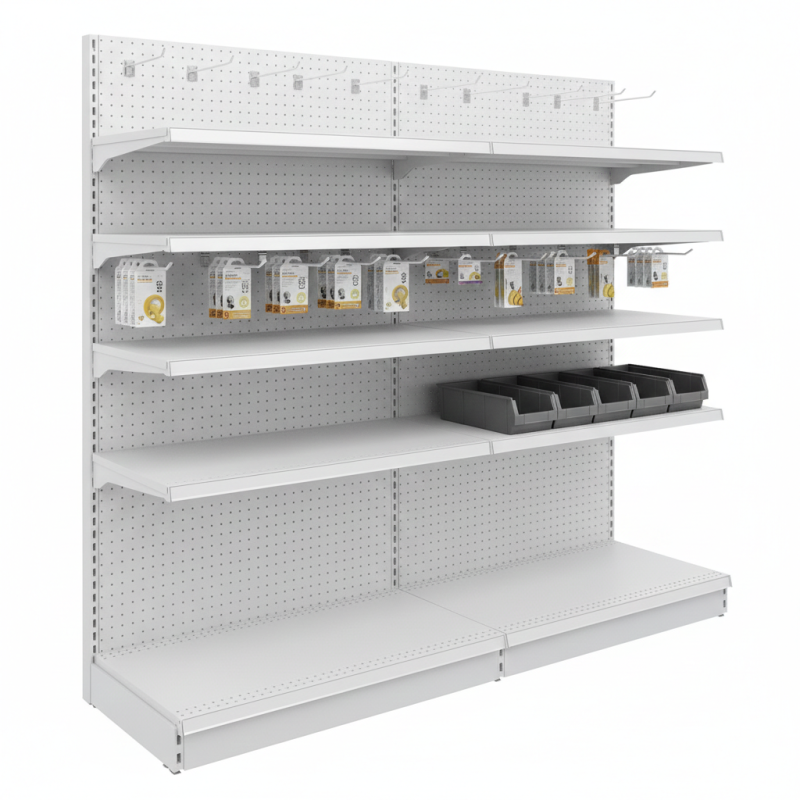 Представяме ви крайстенен стелаж с перфориран гръб – най-гъвкавото и адаптивно търговско оборудване, създадено за нуждите на всеки супермаркет, дрогерия, магазин за аксесоари или стоки за дома. Този модулен стелаж е проектиран да ви даде пълен контрол върху презентацията на вашата стока, като ви позволява да редувате окачване на продукти с традиционно излагане на рафтове.