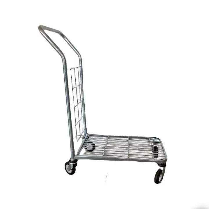 Количката е изработена от здрава метална конструкция с поцинковано покритие, гарантиращо дълготрайност и устойчивост на ежедневно износване. Нейните малки размери (Ш: 42 см, Д: 102 см) позволяват безпроблемно движение през тесни коридори и между стелажи.