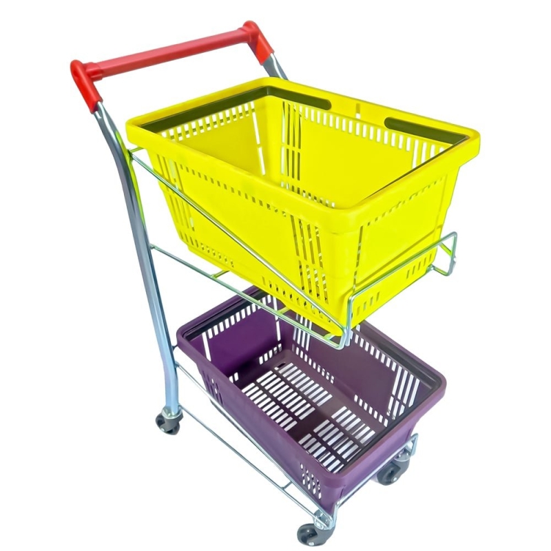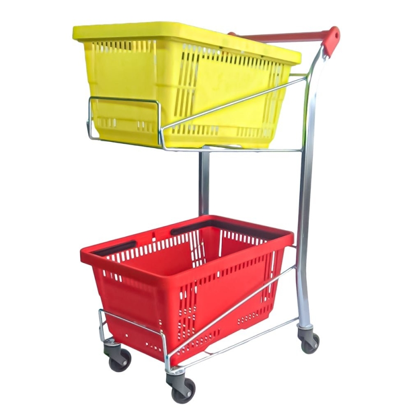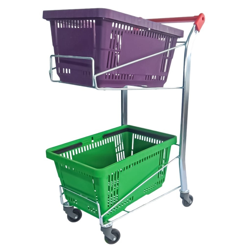 Професионална двойна стойка за кошници с колела – оптимизация на търговското пространство