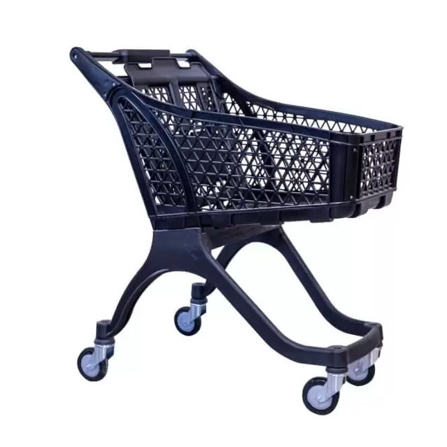 Тази количка е перфектното модерно решение за бързо пазаруване или за обекти с по-малка площ, като същевременно осигурява пълен комфорт на семействата. С практичен капацитет от 100 литра, тя е идеална за ежедневни покупки и се отличава с изключително ниско тегло – само 9.500 кг. Кошът е изработен от 30% полипропилен, подсилен със стъклени влакна, което гарантира отлична устойчивост на удар и осигурява тихо движение в търговската зала. Елегантният черен цвят придава стилен и дискретен вид. Количката е проектирана с вградена детска седалка, което е голямо предимство за родителите. Благодарение на компактните си размери (дължина 98 см, ширина 59 см, височина 87 см), удобната дръжка и четирите стабилни колела, тя осигурява изключително лесно и плавно маневриране в тесни коридори и на касата. Инвестирайте в тази лека и функционална количка, за да оптимизирате бързото обслужване на клиентите.