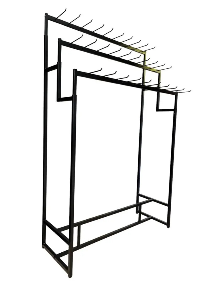 Осигурете си перфектна организация и максимална видимост на Вашата колекция от колани с нашия елегантен щeндер за колани на 3 етажа с 30 куки. Този метален щeндер е незаменимо търговско оборудване за бутици, магазини за аксесоари и всякакви търговски обекти, които се нуждаят от ефективно и стилно решение за излагане. Със своите оптимални размери – ширина: 100 см, дължина: 38 см и височина: 157 см – той предлага щедро пространство за експозиция, без да заема излишна площ. Трите нива и общо 30 здрави куки позволяват интуитивно категоризиране на артикулите по стил, размер или цена, улеснявайки избора на клиентите и стимулирайки продажбите. Луксозният цвят - черен мат, придава изискан и модерен вид, като същевременно гарантира дълготрайна устойчивост и лесна поддръжка, превръщайки всеки колан в забележителен акцент. Изберете този търговски щeндер, за да трансформирате визията на Вашия магазин и да предложите на клиентите си организирано и приятно пазаруване.