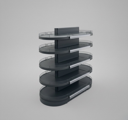 Островен стелаж с овални рафтове – центърът на Вашата търговия