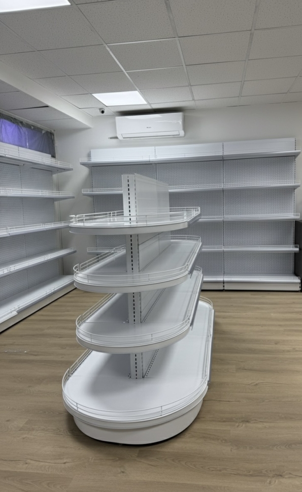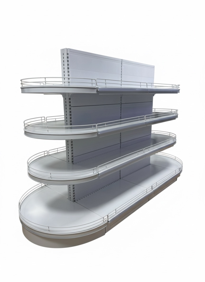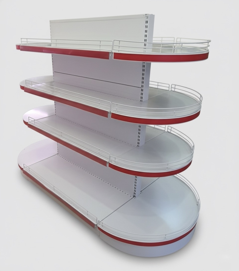 Островен стелаж с овални рафтове – центърът на Вашата търговия