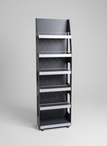 • Максимална видимост в минимално пространство – със своята дълбочина от едва 20 см, стелажът е перфектен за тесни коридори или зони с голям човекопоток, където пространството е ограничено.
