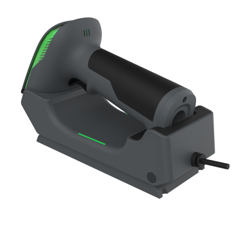 Да. В комплекта е включена специална стойка (кредъл). Когато поставите скенера на нея, можете да активирате автоматичен режим, при който устройството сканира само щом засече баркод пред сензора си.